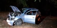 perdió el control del rodado, chocó contra un árbol y terminó volcando.