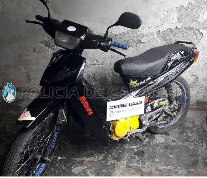 Rápidamente, el personal policial interviniente realizó amplios recorridos logrando en la intersección de la calle Gob. Ferrari y avenida Hipólito Yrigoyen, aprehender a dos jóvenes de apellidos Cejas (20) y Lobo (22) y secuestrar una motocicleta Yamaha Crypton 110 cc., de color negro.