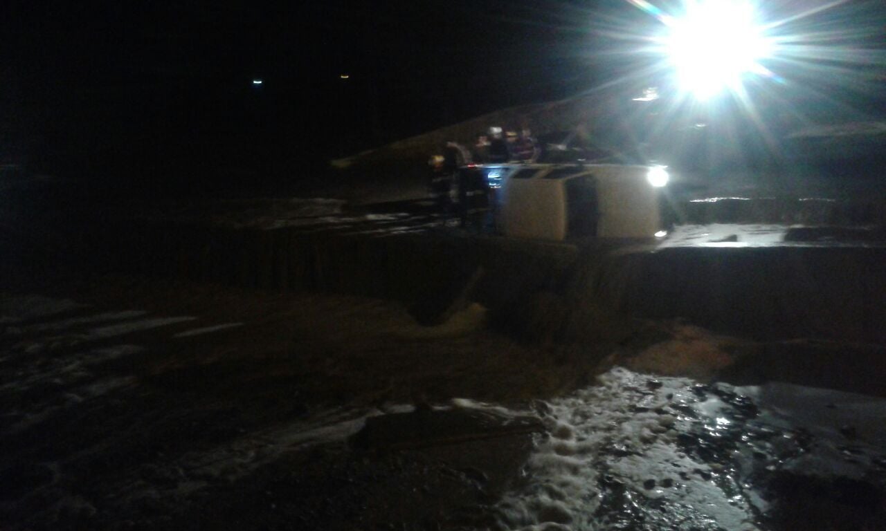 Tula no se percató que al badén le faltaba un parte y volcó