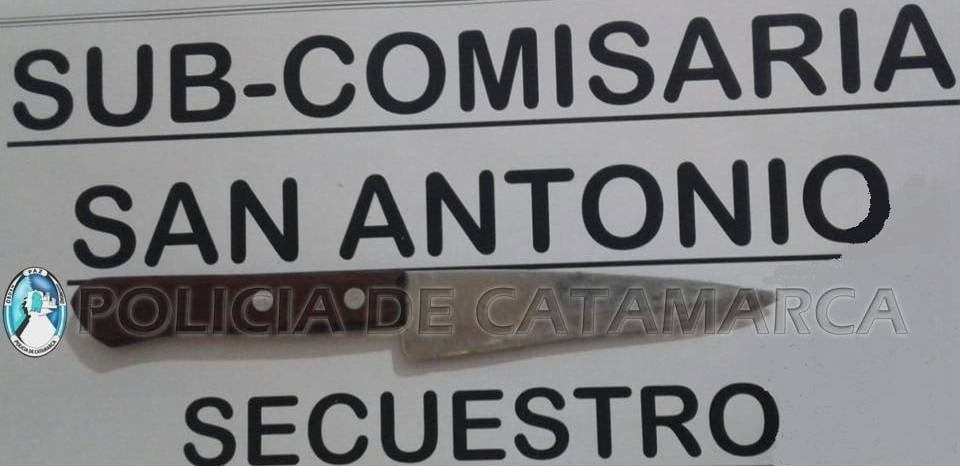 Finalmente, fue interceptado en la rotonda del ingreso a la Quebrada de Moreira, donde al realizarle la requisa correspondiente, los policías encontraron entre sus prendas de vestir un cuchillo tipo carnicero, que quedó en calidad de secuestro.