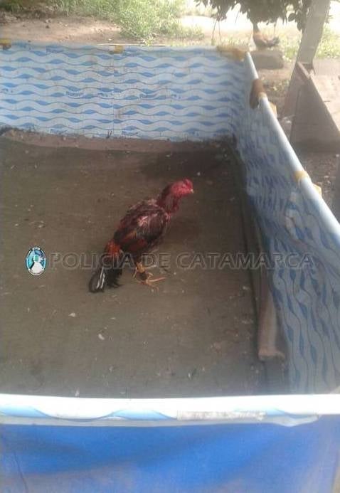 Al secuestro de un cuadrilátero de lona, una balanza, un machete, una pinza, una sierra, un reloj, varias puntas, siete gallos de riña y otros elementos probatorios.