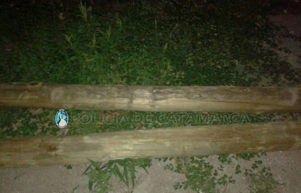 Al constituirse en el lugar, el personal policial interviniente encontró oculto entre la maleza dos postes de madera del tendido eléctrico de aproximadamente unos 8 metros cada uno.