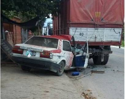 tratan de establecer, chocó contra un camión Volkswagen 15-170 rojo, dominio
