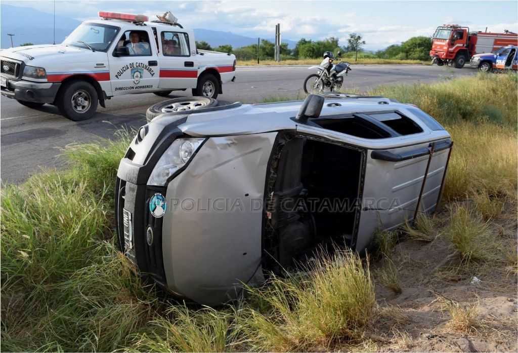 hoy, a las 18:25, en la Av. de Circunvalación Dr. Néstor Kirchner, a unos 200 Mts. del Mercado de Abasto Municipal, Valle Viejo, una camioneta Ford EcoSport gris, dominio JNB-117, volcó en una de las banquina, por causas que son materia de investigación.
