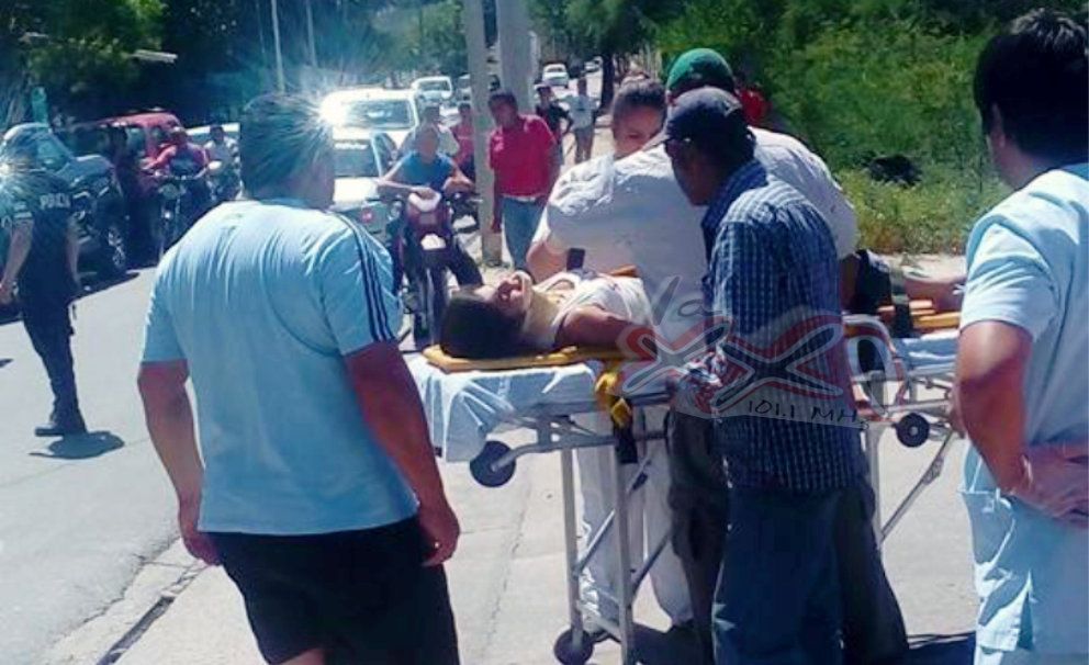El hecho tuvo lugar pasada las 13.30, cuando dos jóvenes con una bebe se dirigían en un ciclomotor 110 CC, en dirección contraria por calle Max Smith, y al llegar a la intersección con Belgrano (Hogar de Ancianos San Viocente de Paul) impactó contra un auto Peugeot 308 Dominio NIN 158 de Saujil, .