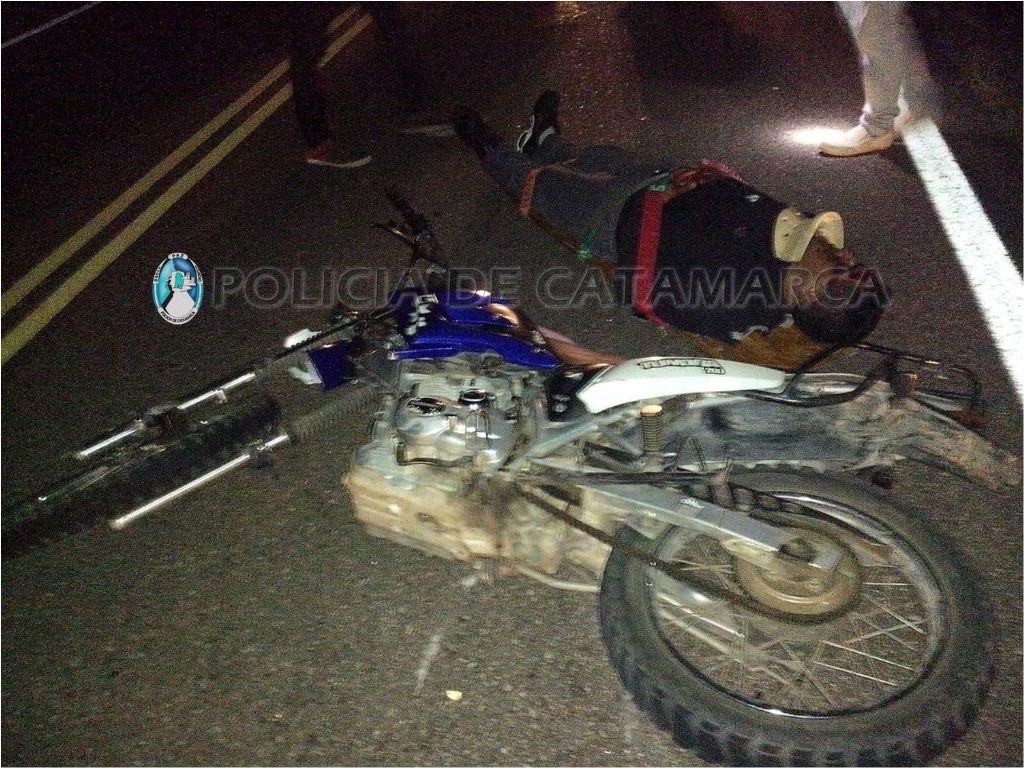 A las 05:50 de hoy, en ruta nacional N°40, a la altura del paraje Quebrada Belén, departamento homónimo, una motocicleta Cerro 200 cc., de color azul, conducida por Héctor Luis Abarsa (30), acompañado por Arnoldo Aníbal Bellido (23), embistió a Juan Facundo Quiroga (39) quien caminaba en peregrinación.
