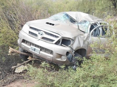 Una camioneta Toyota Hilux en la que se conducían dos hombres domiciliados en Fiambalá, volcó hoy sobre Ruta Nacional N°60, en el ingreso Sur de la localidad de Tinogasta.