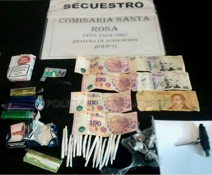 Luego de identificarlos, el personal policial interviniente practicó una requisa y encontró entre sus prendas de vestir un elemento punzante de fabricación casera, conocido como "espadita", cuatro envoltorios de nylon conteniendo una sustancia herbácea, 17 cigarrillos de armado casero conteniendo la misma sustancia, $510 en efectivo, pastillas de Diclofenax, encendedores y papel para armar cigarrillos.
