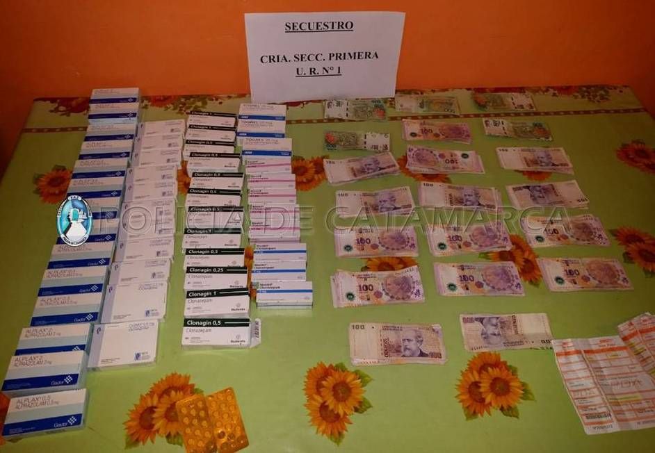 De averiguaciones realizadas, los efectivos pudieron establecer que todo lo secuestrado estaría relacionado con un ilícito perpetrado en la madrugada de hoy, en una farmacia de la localidad de Villa Dolores, Valle Viejo.