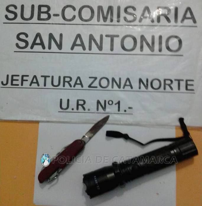 un Agente de Policía con una picana y con una cortapluma que quedaron en