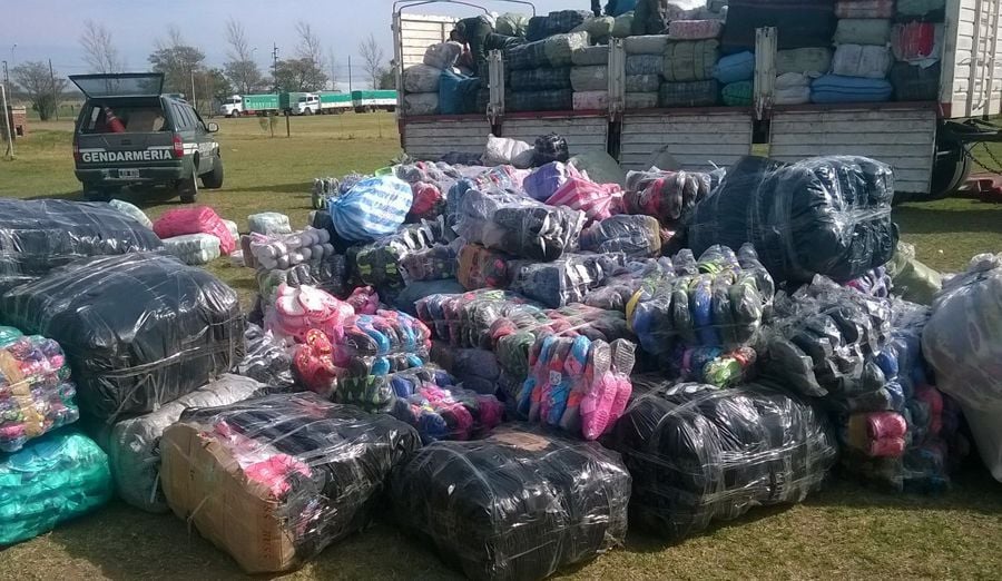 El personal policial interviniente observó que transportaban gran cantidad de ropa, frazadas y calzado de origen extranjero.