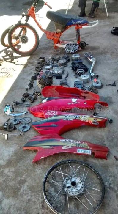 Bajo las directivas de la Fiscalía de Instrucción de la sexta Circunscripción Judicial, a cargo de la Dra. Virginia Duarte Acosta, los Policías procedieron al secuestro del cuadro de una motocicleta, dos ruedas, siete tapa de motores de diferentes marcas, un motor completo, un caño de escape marca Cott, dos carburadores de 150 cc., cuatro cachas de color rojo marca Gilera, un amortiguador y dos tapas de cilindro.