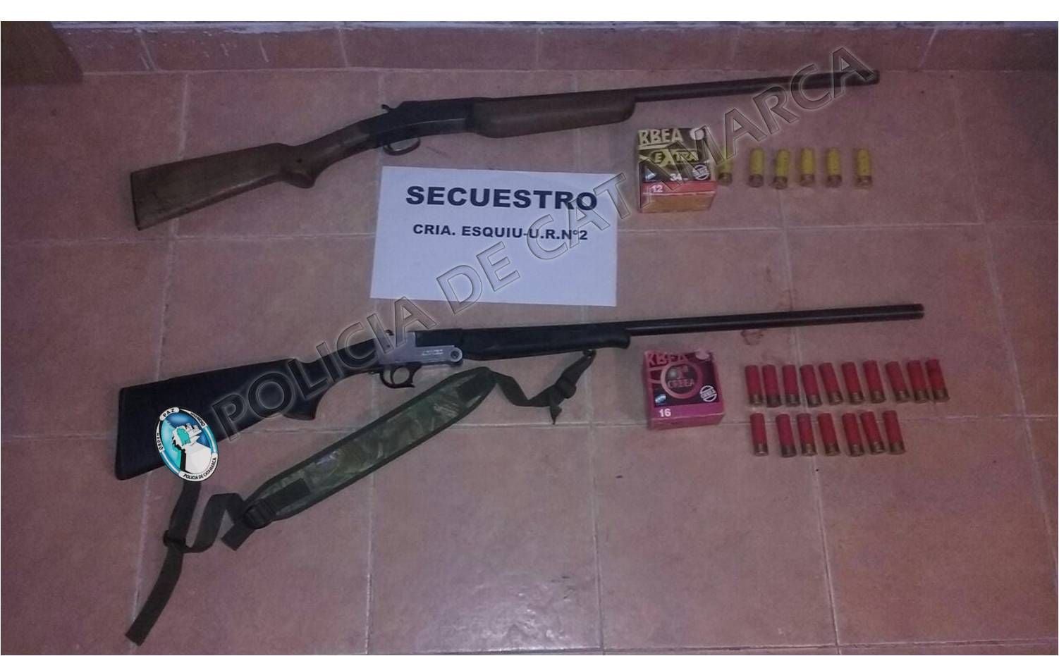Durante el procedimiento, los Policías arrestaron a dos personas del sexo masculino de apellidos Herrera y Romero, de 28 y 42 años respectivamente, y demoraron preventivamente a otro hombre de apellido Burgos, de 40 años de edad, en virtud que en la caja del vehículo transportaban dos escopetas; una marca ARMED calibre 16, con 17 municiones del calibre y la otra marca GAUGE calibre 12 con 6 cartuchos, como así también dos ejemplares muertos de vizcacha y dos conejos, producto de la caza que habrían realizado en la zona.