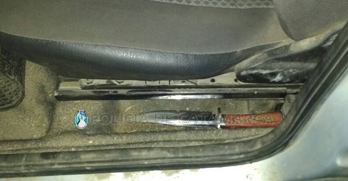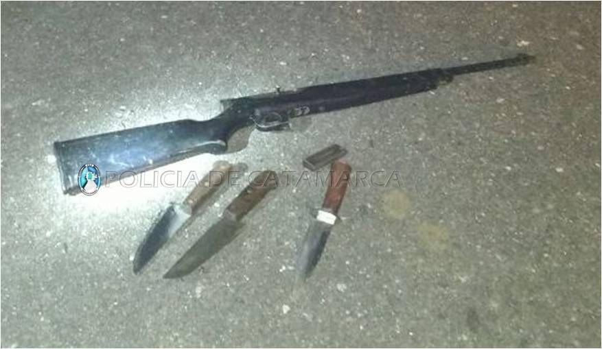 Al momento de realizar el control sobre el rodado, los uniformados observaron que en el interior del baúl transportaban un animal vacuno muerto de pelaje de color negro, señal de sangre O.I. mutilada y O.D. despunte y muesca de encima, sin marca de fuego y un cuarto trasero de otro animal, de pelaje color colorado, marca de fuego "Y” (arriba) y "46” (abajo). Además, llevaban 3 cuchillas tipo carnicero y un arma de fuego carabina calibre 22. Se procedió al secuestro de los elementos.