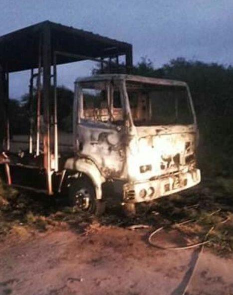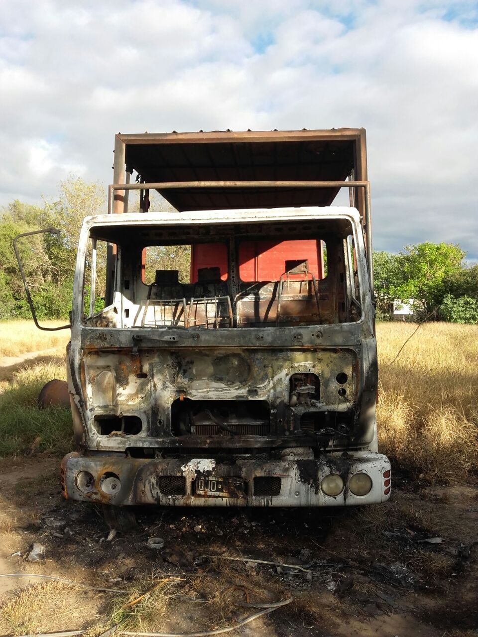 El camión, que lo alquilaban para realizar sus trabajos, quedó completamente consumido por las llamas.