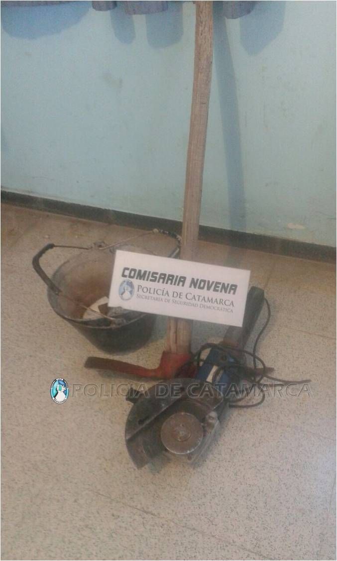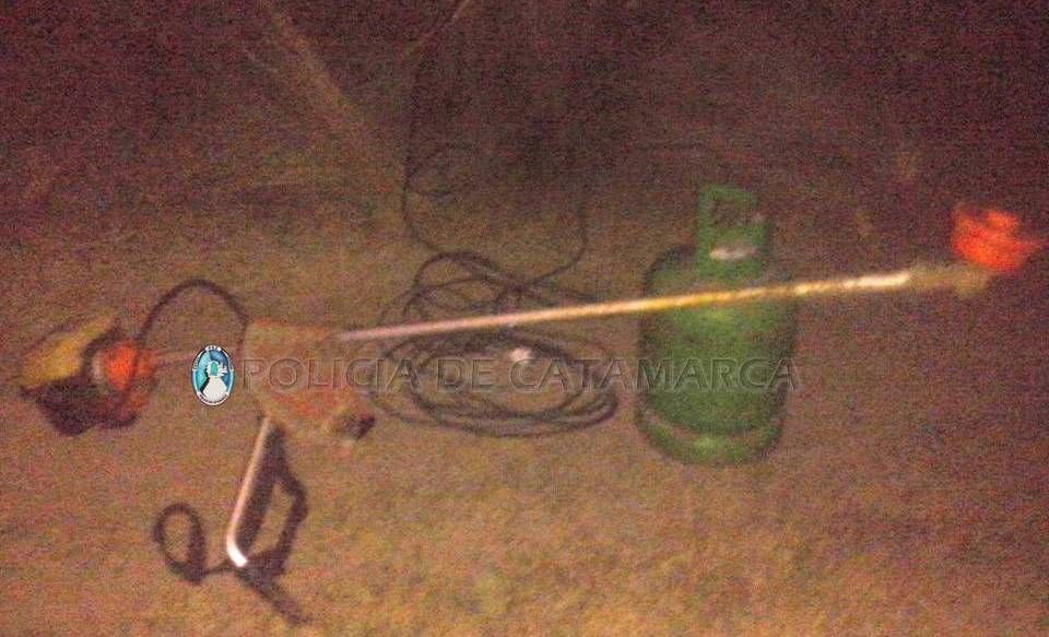 Ellos habrían sustraídos una maquina moto guadaña marca Gamma, una garrafa de 10 kilogramos de color verde y un alargador de 25 metros, elementos que fueron secuestrados en un descampado y luego trasladados a Comisaría.
