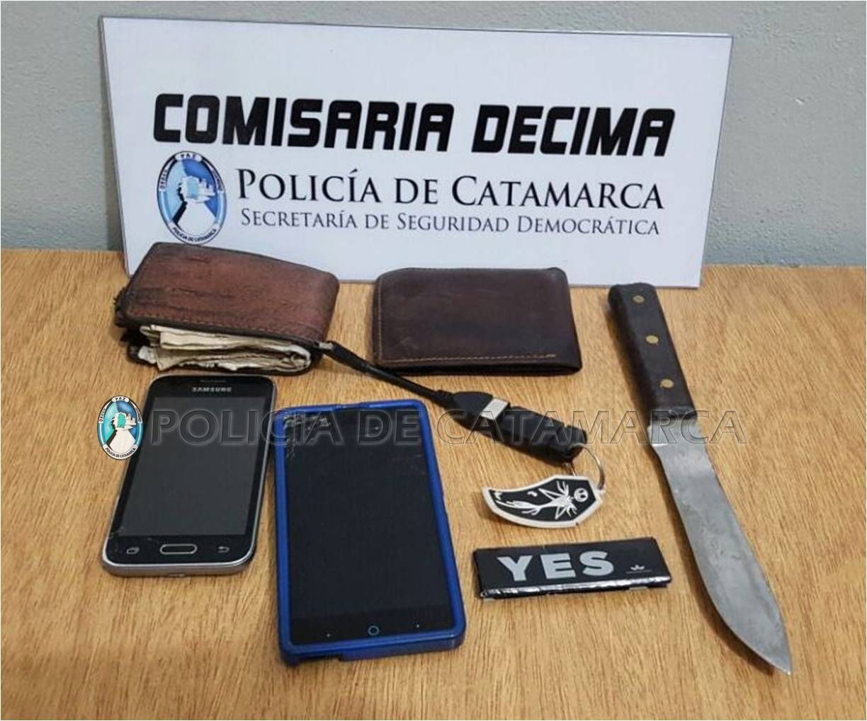 Al ser trasladado a la dependencia policial, se consultó a la base de datos del Comando Radioeléctrico, donde pudieron establecer que sobre el joven obraba un requerimiento Judicial de detención, emanado por la Fiscalía de Instrucción Nº1, a cargo Dr. Víctor Figueroa, por el supuesto delito de robo agravado por el uso de armas en calidad de autor por un hecho ocurrido el día domingo 21 de mayo, a horas 23.50 en la esquina de las calle Chubut y Rio Salado, donde habría agredido físicamente con un arma blanca a un adolescente de 16 años , para sustraerle un teléfono celular, marca BGH Joy, de color negro.