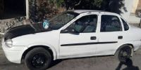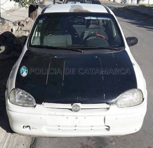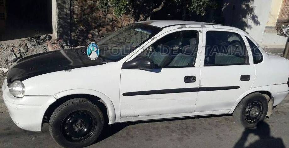 Chevrolet Corsa, dominio CYH-931, de color blanco y capot negro, que se estaba