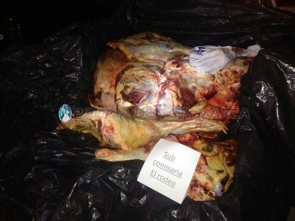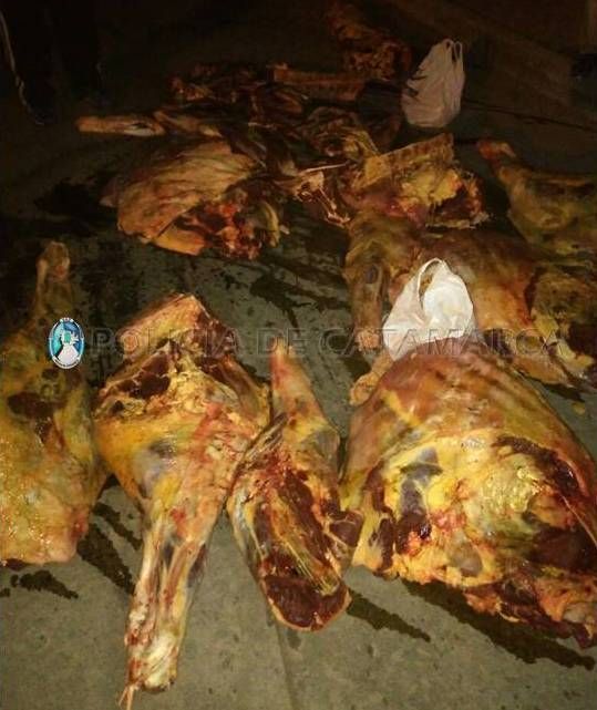 interior de la caja trasportaban una vaca y un novillo faenados, con un peso