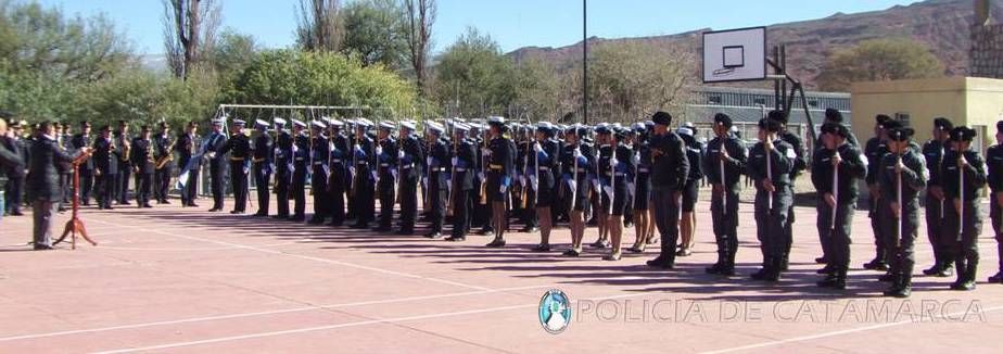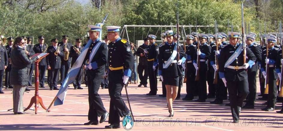 La gobernadora de la provincia Lucia Corpacci, presidió el acto y estuvo acompañada por el Ministro de Educación Daniel Gutiérrez, el Intendente Ramón Villagrán, el Secretario de Seguridad Marcos Denett, el Jefe de Policía Orlando Quevedo y el Jefe de Cuerpo de la Escuela de Cadetes.