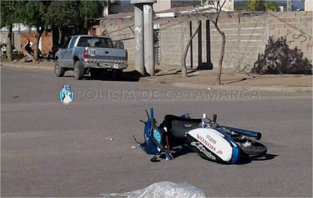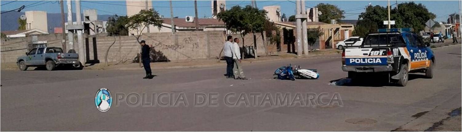 Hoy, a las 14:40, en la intersección de las avenidas Choya y Los Terebintos, se registró un siniestro vial. Una motocicleta Motomel Blitz 110 cc., dominio 148-LJL, de color azul y gris, conducida por un adolescente de 17 años de edad, por motivos que se tratan de establecer colisionó con una camioneta Chevrolet S 10, dominio HBJ-109, de color gris, perteneciente a Vialidad Provincial, conducida por Jorge Pablo Orellana (41). A raíz del siniestro, el joven motociclista sufrió lesiones y fue asistido por personal médico del SAME. Intervino personal de la Comisaría Octava y los Sumariantes de la Unidad Judicial N° 8.