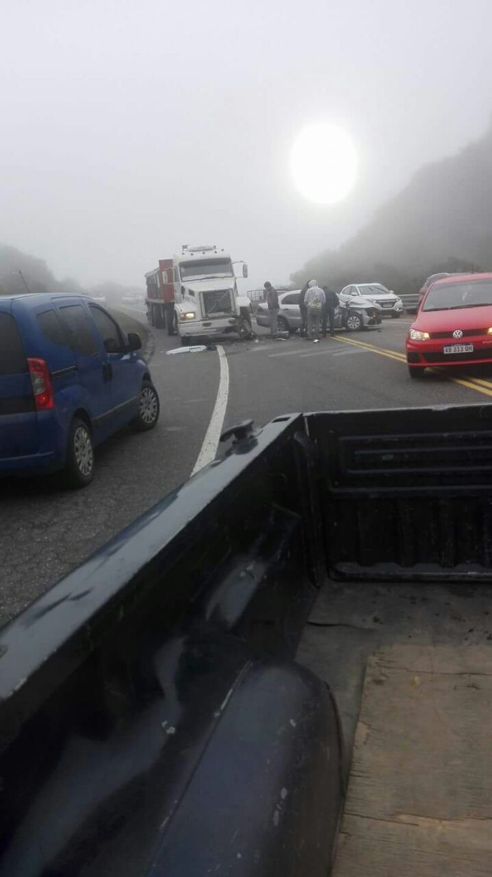 Hoy a las 14:10,en la ruta nacional Nº 38, a la altura de el Puesto La Viuda, de la localidad de La Viñita, Departamento Paclín, se produjo un siniestro vial protagonizado por un camión Volvo 320, dominio AZB-048, de color blanco, al mando de Juan Carlos Moya (45), que por causas que se tratan de establecer colisionó con un automóvil Volkswagen Voyage gris, dominio AA521JN, conducido por José Adrian Nieva (38).