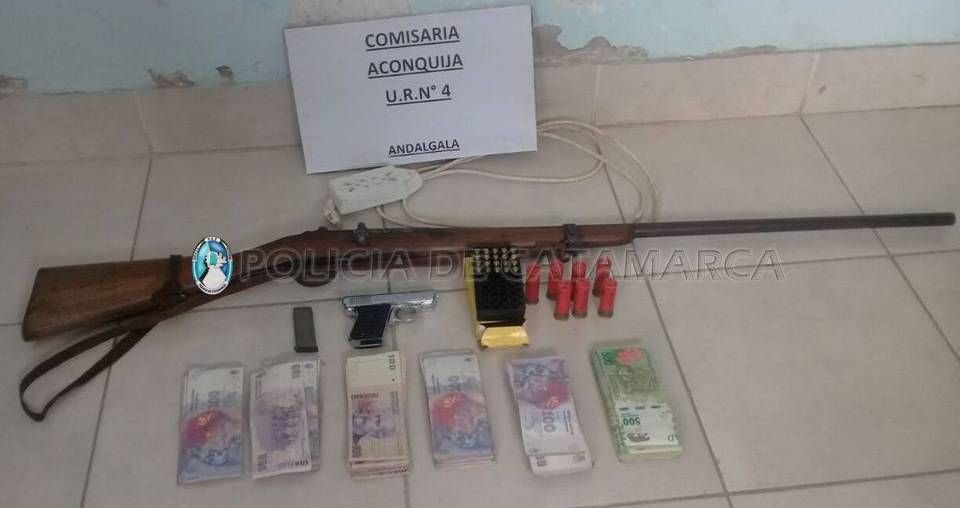 En el lugar, los uniformados recuperaron $90.000 en efectivo, una pistola calibre 22 marca Sundance, veinte municiones del mismo calibre, una escopeta calibre 16 marca GEBR con siete cartuchos y un prolongador de corriente, que fueron sustraídos el 5 de julio de una vivienda ubicada en el paraje Condor Huasi, departamento Andalgalá.