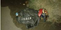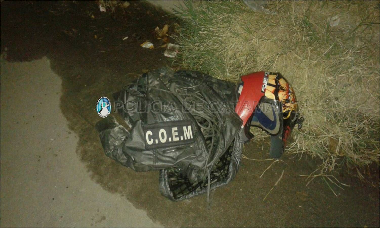 saltaba una tapia medianera con una campera de color negro entre sus manos, que
