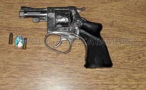 Al momento de realizarle la requisa correspondiente, los policías encontraron entre sus prendas de vestir un revolver calibre 22 corto, con dos municiones en el tambor, que quedaron en calidad de secuestro.
