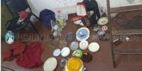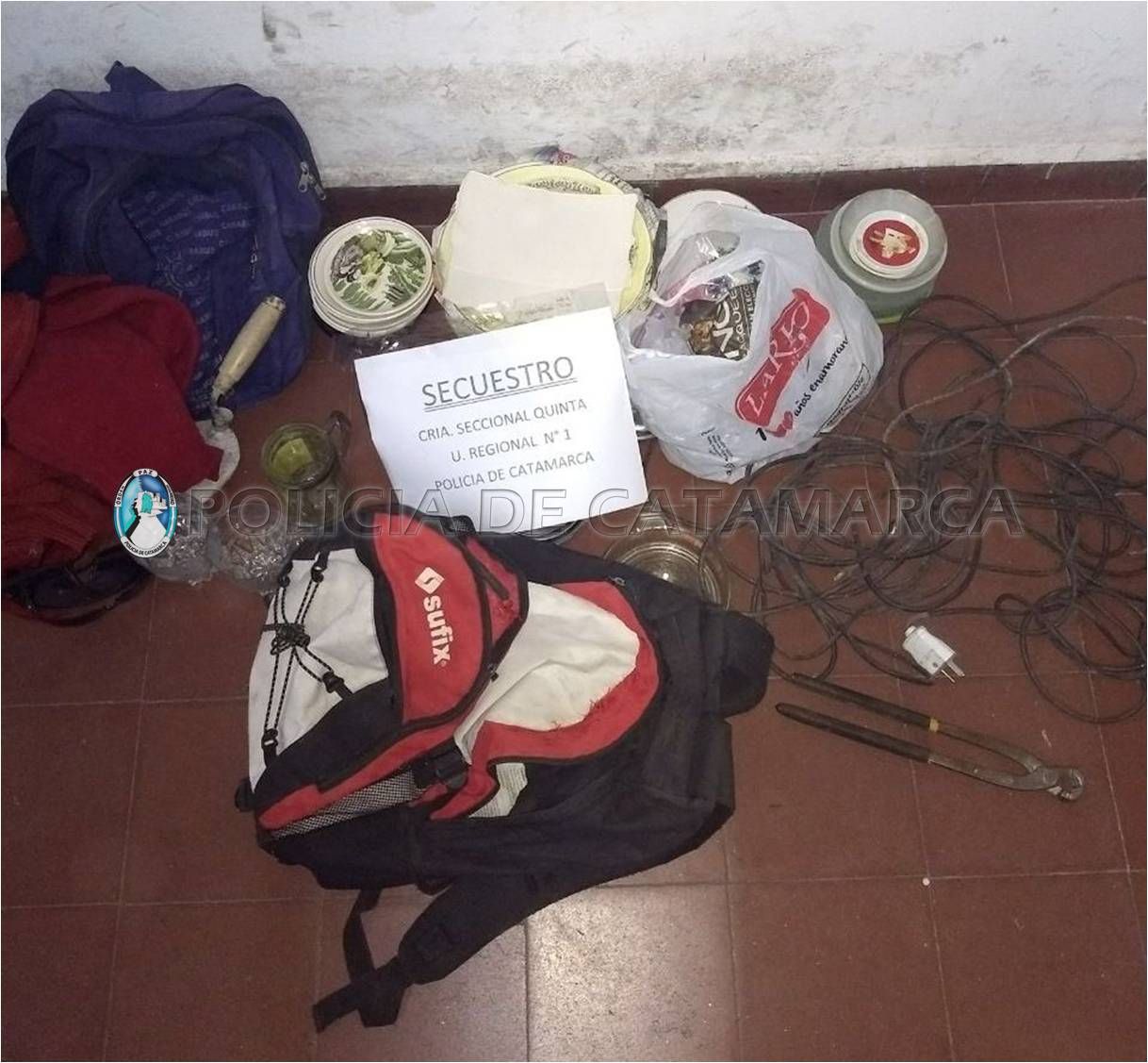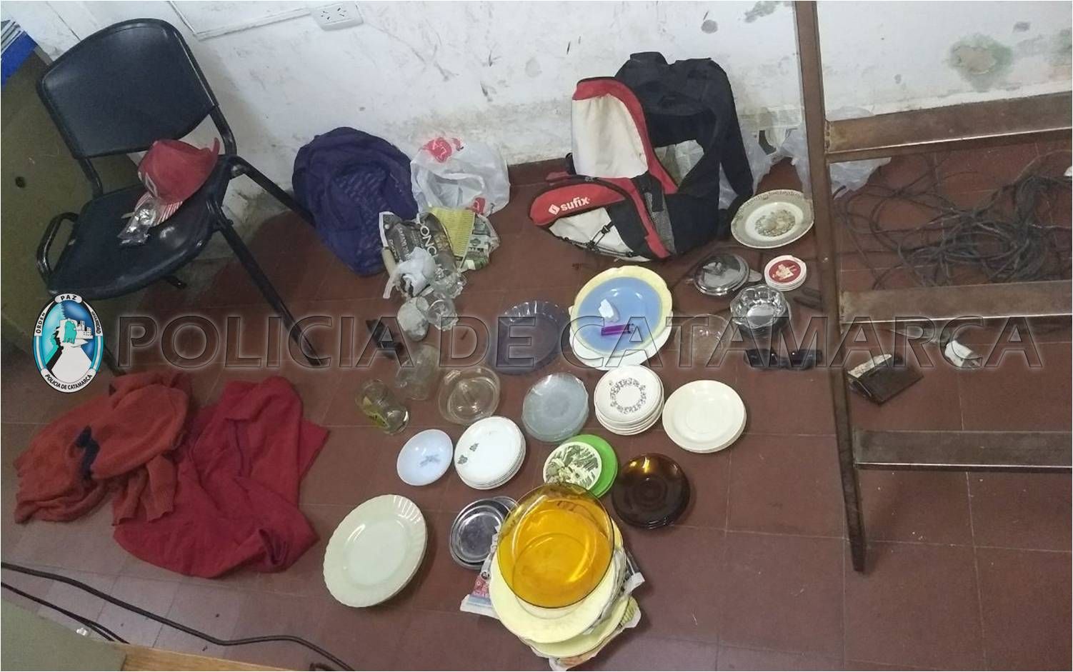 Durante el procedimiento, al realizarles una requisa observaron que en el interior de las mochilas trasladaban vasos, tasas, platos y herramientas varias.