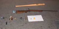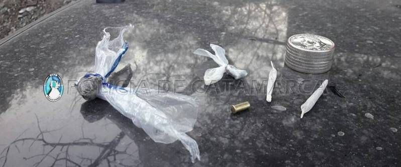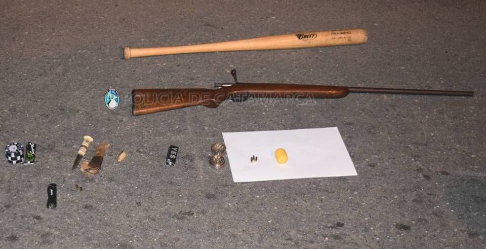 Durante la requisa, los Policías encontraron oculto en el rodado una escopeta calibre 12, tres cartuchos y dos vainas servidas del mismo calibre, un bate de beisbol, un cuchillo artesanal, tres cigarrillos de armado casero con una sustancia herbácea y dos envoltorios de nylon conteniendo la misma sustancia.