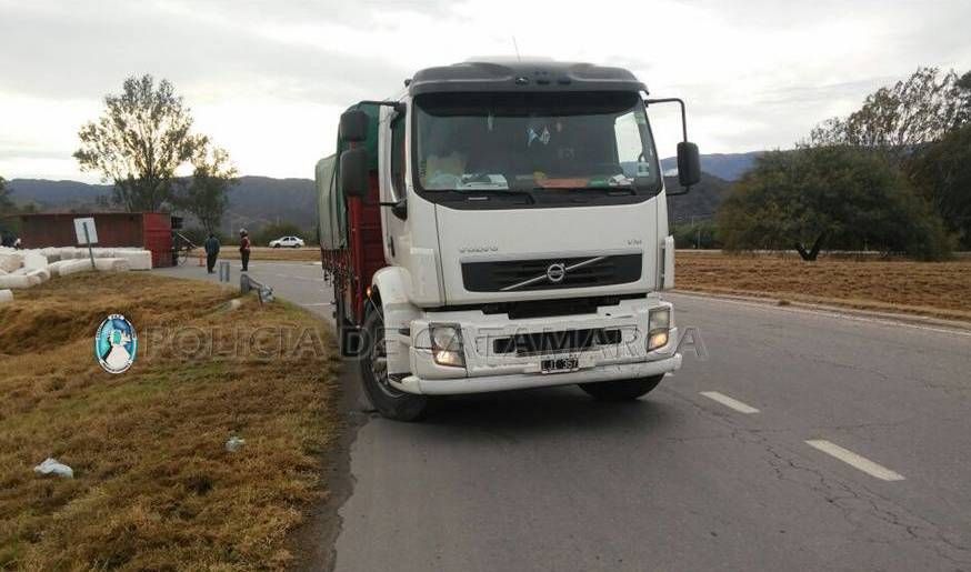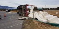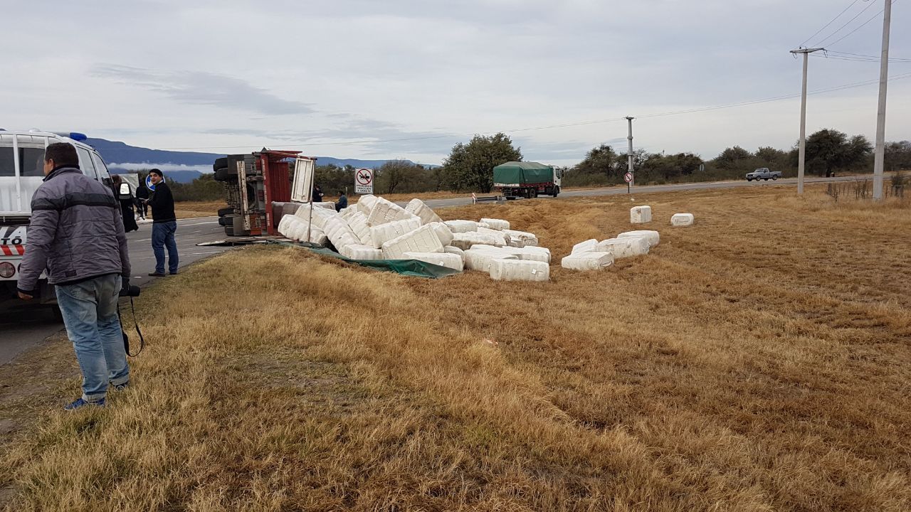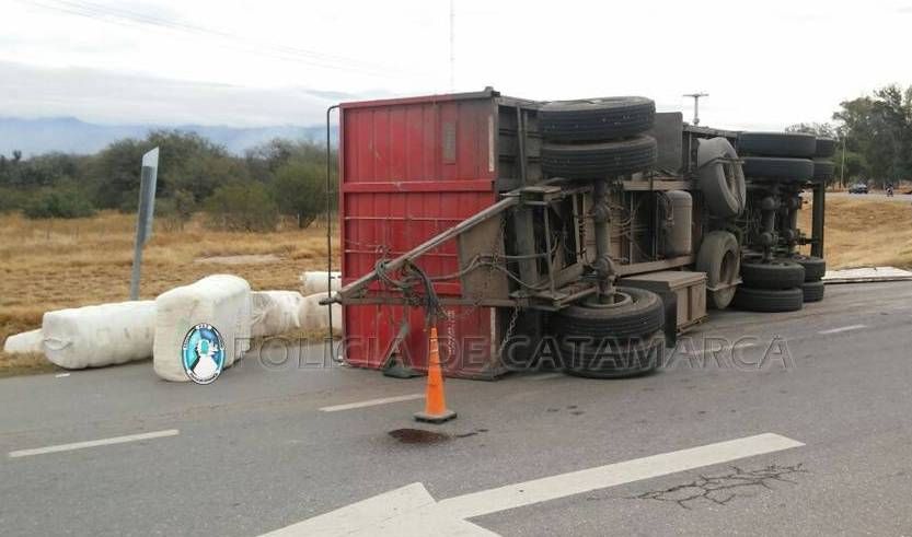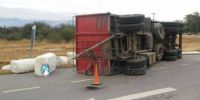 control del rodado y el acoplado terminó volcando sobre la calzada.