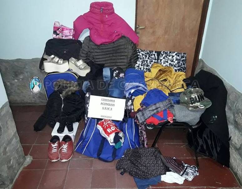 En total, recuperaron 1 valija, 7 camperas, 1 par de zapatos, 1 par de zapatillas, y varios pantalones jeans para mujeres, hombres, y niños, entre otras prendas de vestir