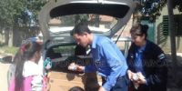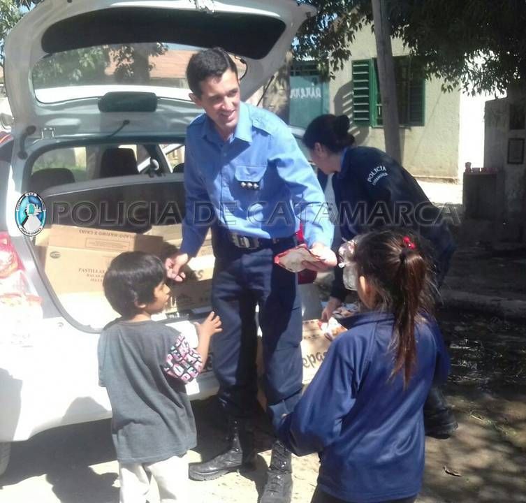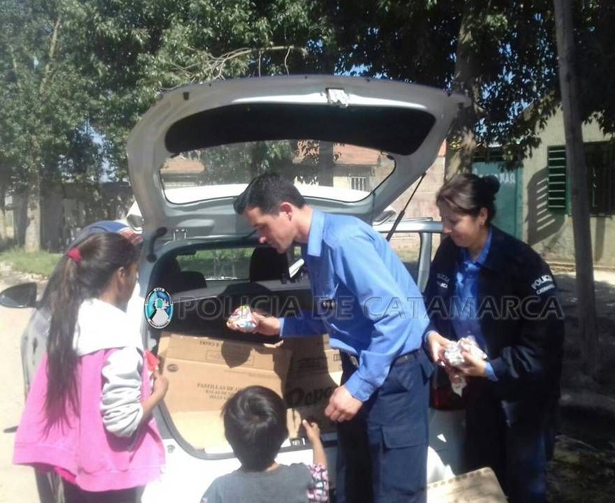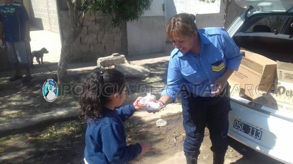 Asimismo, personal policial femenino perteneciente a dicha dependencia hizo lo propio con alumnos de la escuela de la localidad de Las Lajas, Dpto. Paclín, donde también entregó juguetes.