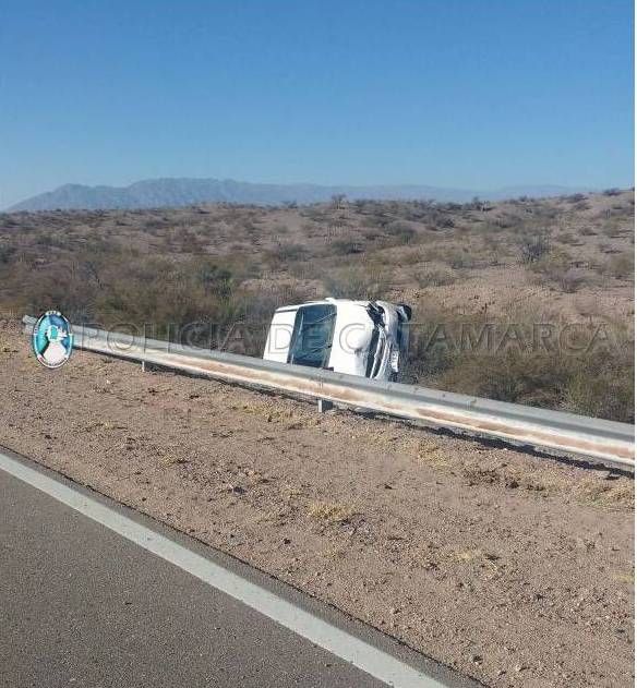 Este último rorado tras el impacto chocó contra el guardarrail y terminó volcando a un costado de la banquina.