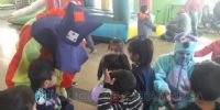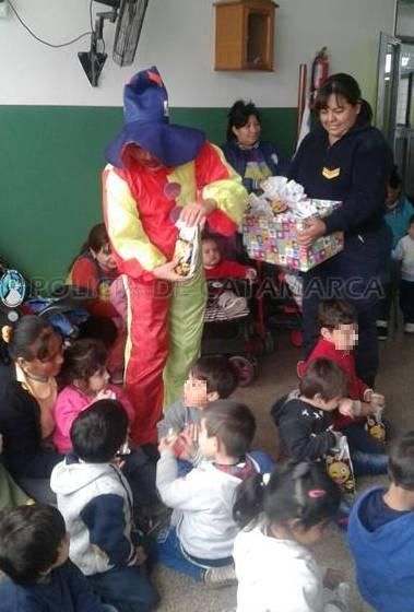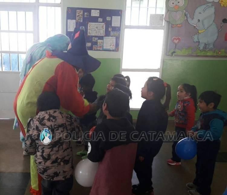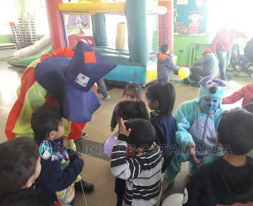 La fiesta tuvo un colorido especial con castillos inflables y la animación de payasos, y luego los niños recibieron golosinas y compartieron un exquisito chocolate con bollitos.