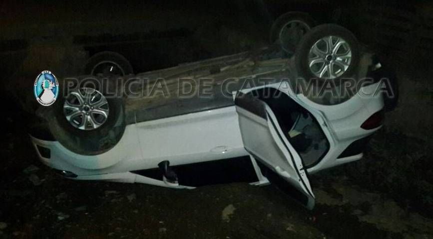 Hoy, a las 5:45, en el B° Hipólito Irigoyen de la localidad de San Antonio, Fray Mamerto Esquiú, Virginia Nancy Rubin (32), que manejaba una camioneta Ford EcoSport, dominio OHT-812, volcó en el canal de riego.