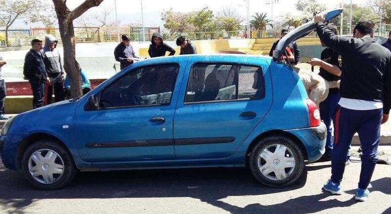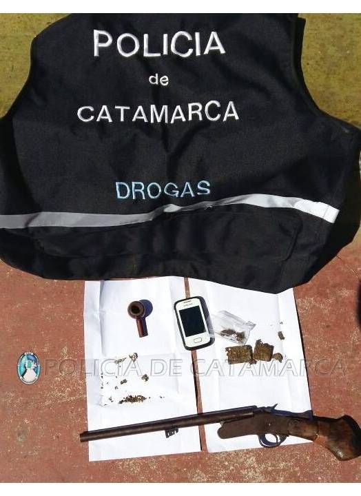 Tras interceptarlos, el personal policial interviniente realizó una inspección en el interior del rodado y encontró un pistolón marca Centauro 75188, calibre 16, un teléfono celular Samsung de color blanco, una pipa de madera marrón, y un envoltorio de nylon conteniendo una sustancia tipo herbácea.