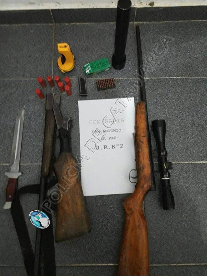 calibre 22, siete cartuchos calibre 16, dos linternas y un puñal, de inmediato