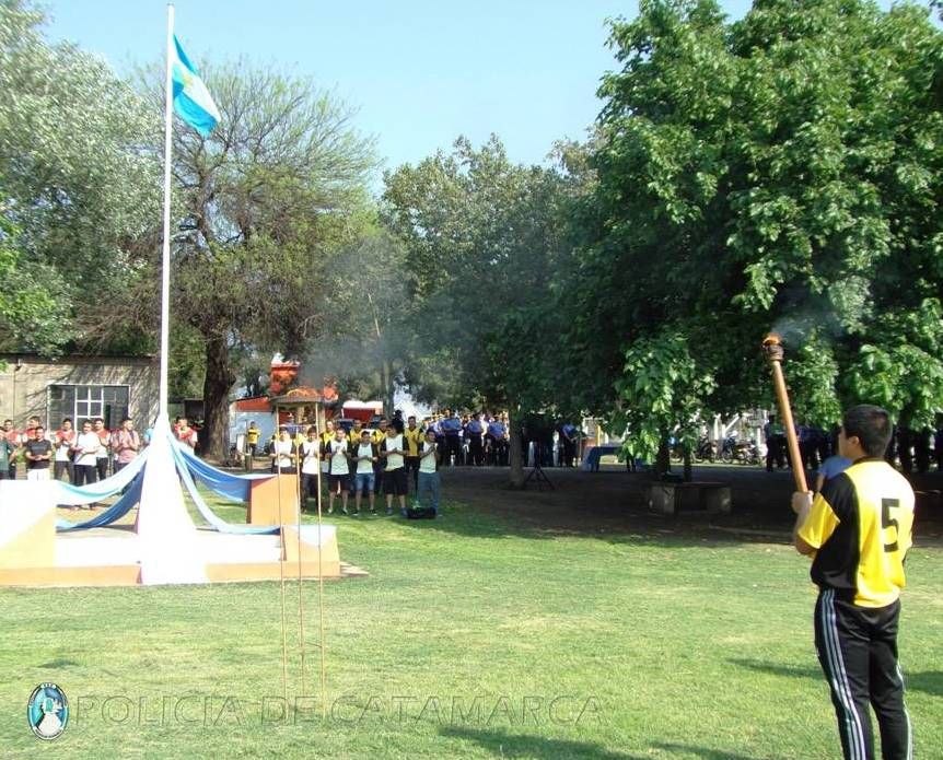 El Capellán Policial, Of. Insp. Pbro. Esteban Chaile, celebró una invocación religiosa, bendijo a los participantes y el fuego de la antorcha olímpica, símbolo del espíritu de camaradería que guiará a los efectivos policiales participantes en las disciplinas de fútbol, pesca, básquet, tiro, vóley, ciclismo, mountan bike, atletismo y paddle.