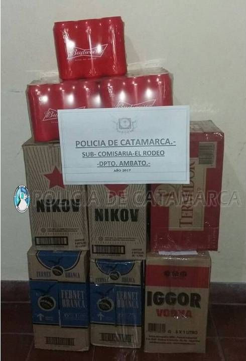 Al inspeccionar el rodado, los Policías constataron que transportaba dos cajas de fernet Branca, cinco fardos de cerveza en lata y ocho cajas de vino blanco Talacasto.