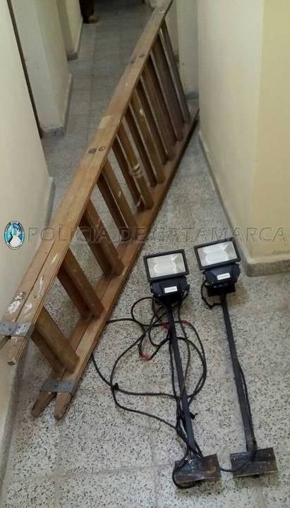 Personal de la Comisaría de Villa Dolores se constituyó en dos domicilios ubicados en la calle Camino de la Virgen de la Capital, propiedad de un hombre de 37 años, y en una calle pública del barrio Don Félix de localidad de San Isidro, Valle Viejo, propiedad de un joven de 25 años, donde los moradores hicieron entrega voluntaria de una escalera de madera tipo tijera y dos reflectores led marca Interelec con soporte de hierro, que estarían vinculados al hecho investigado y quedaron en calidad de secuestro.