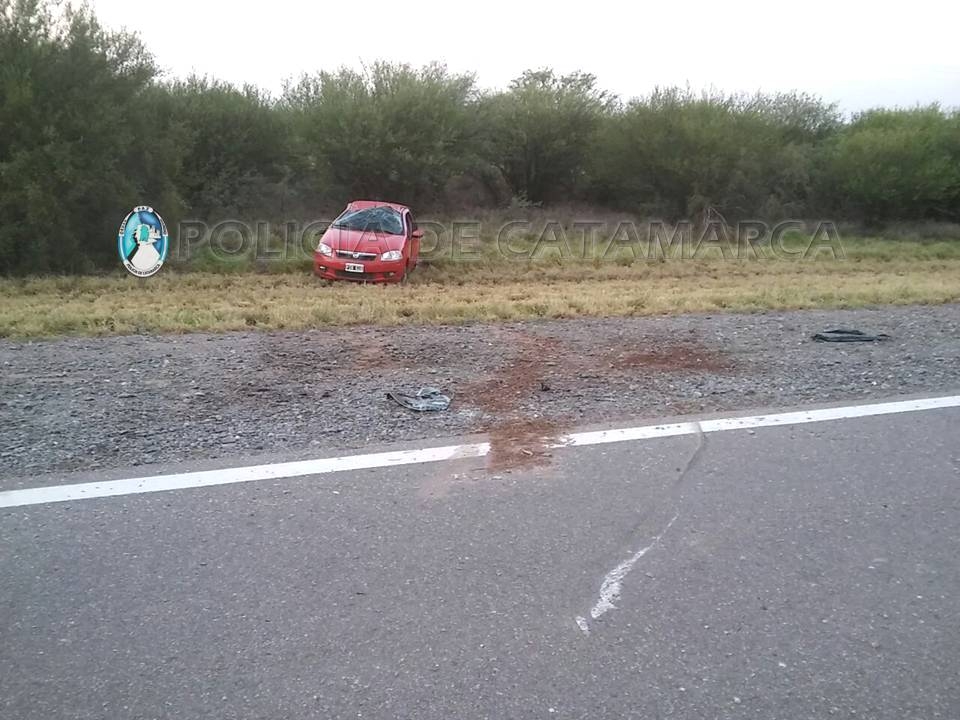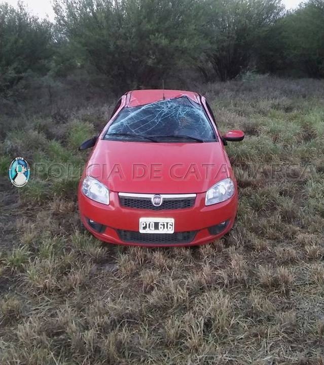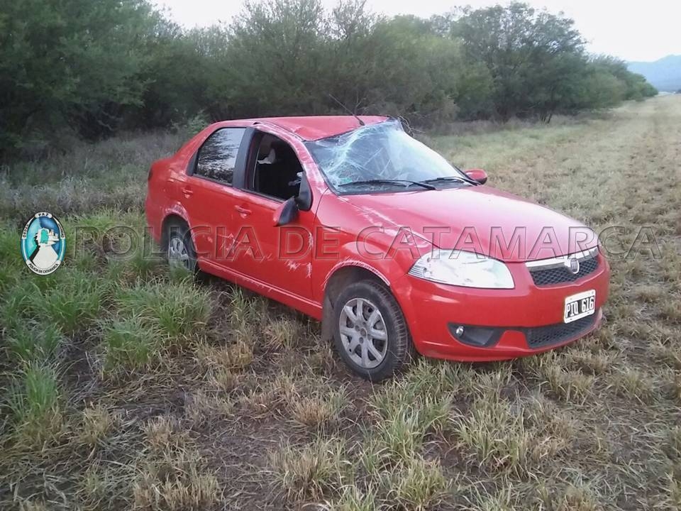 Sergio Córdoba (25), circulaba en un automóvil Fiat Siena, dominio PIQ-616, de color rojo, acompañado por Manuel Díaz (25), y por causas que se tratan de establecer, perdió el control del rodado y volcó a un costado de la banquina.