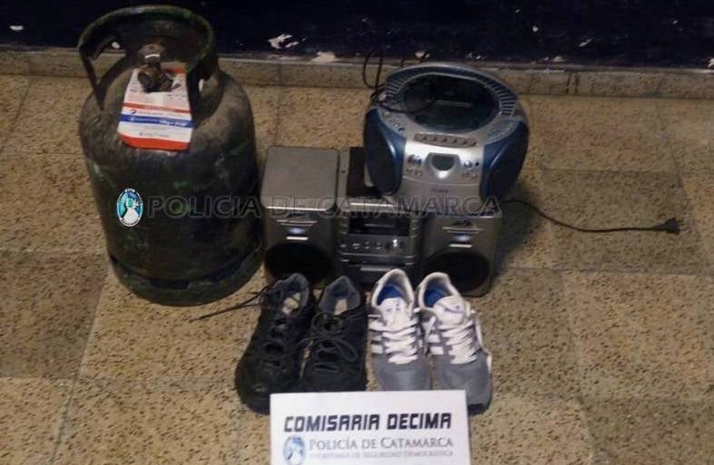 Ayer, a las 23, en el Pasaje Liberal del B° Virgen Niña, policías secuestraron una garrafa de gas de 10 Kg., un radiograbador, un Minicomponente, y dos pares de zapatillas.