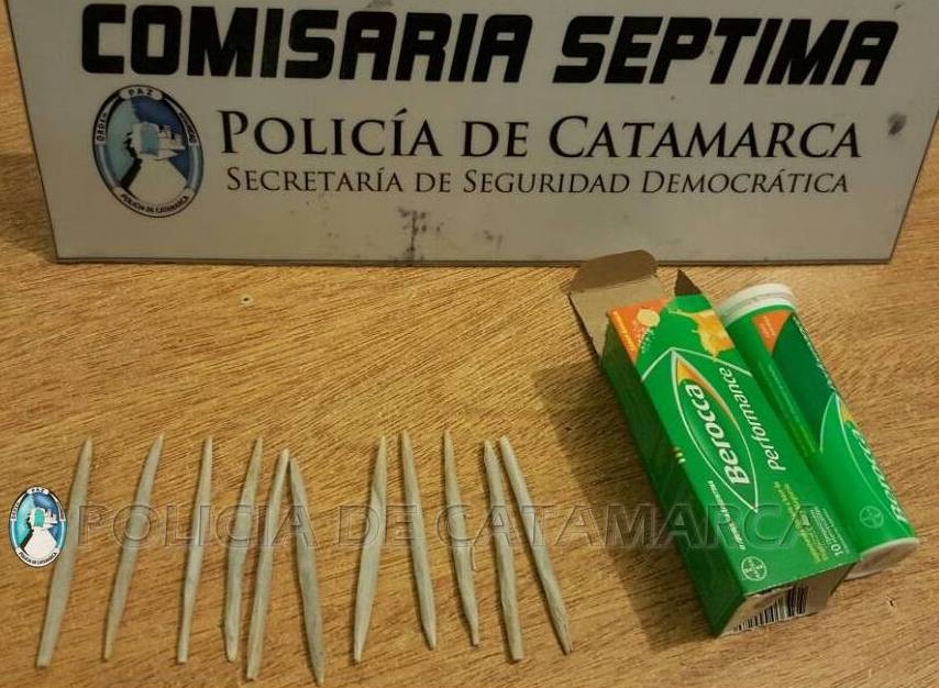 Al practicarle la requisa correspondiente le encontraron entre sus prendas de vestir una caja que contenía en su interior un envase de plástico con once cigarrillos de armado casero con Marihuana, que quedaron en calidad de secuestro.