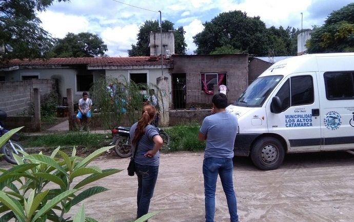 Personal policial junto a vecinos y empleados de la Municipalidad de Los Altos acudieron a brindar ayuda a la familia damnificada.