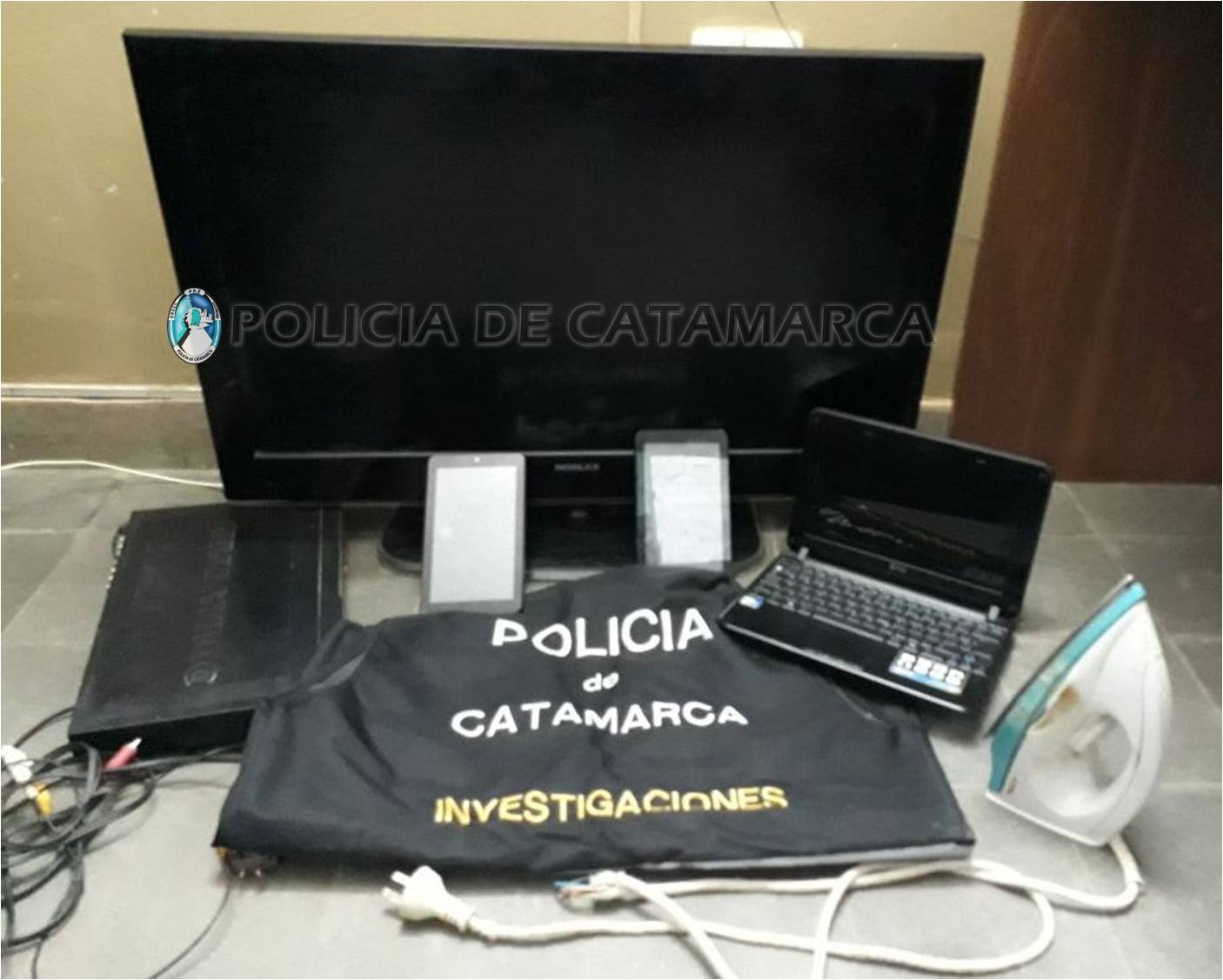 La primera de las medidas Judiciales, se llevó a cabo en un domicilio de la Manzana “M”, del barrio Eva Perón, propiedad de una familia de apellido Cabrera, donde los investigadores lograron secuestrar un televisor Nóblex 32 pulgadas, de color negro, y una plancha EXO blanca, mientras que tras irrumpir en una vivienda del barrio Altos de Choya, propiedad de la familia Reales, los efectivos incautaron dos Tablet marcas Nóblex y Bah, una Notebook EXO, de color negro y un reproductor de DVD Durabrand negro.