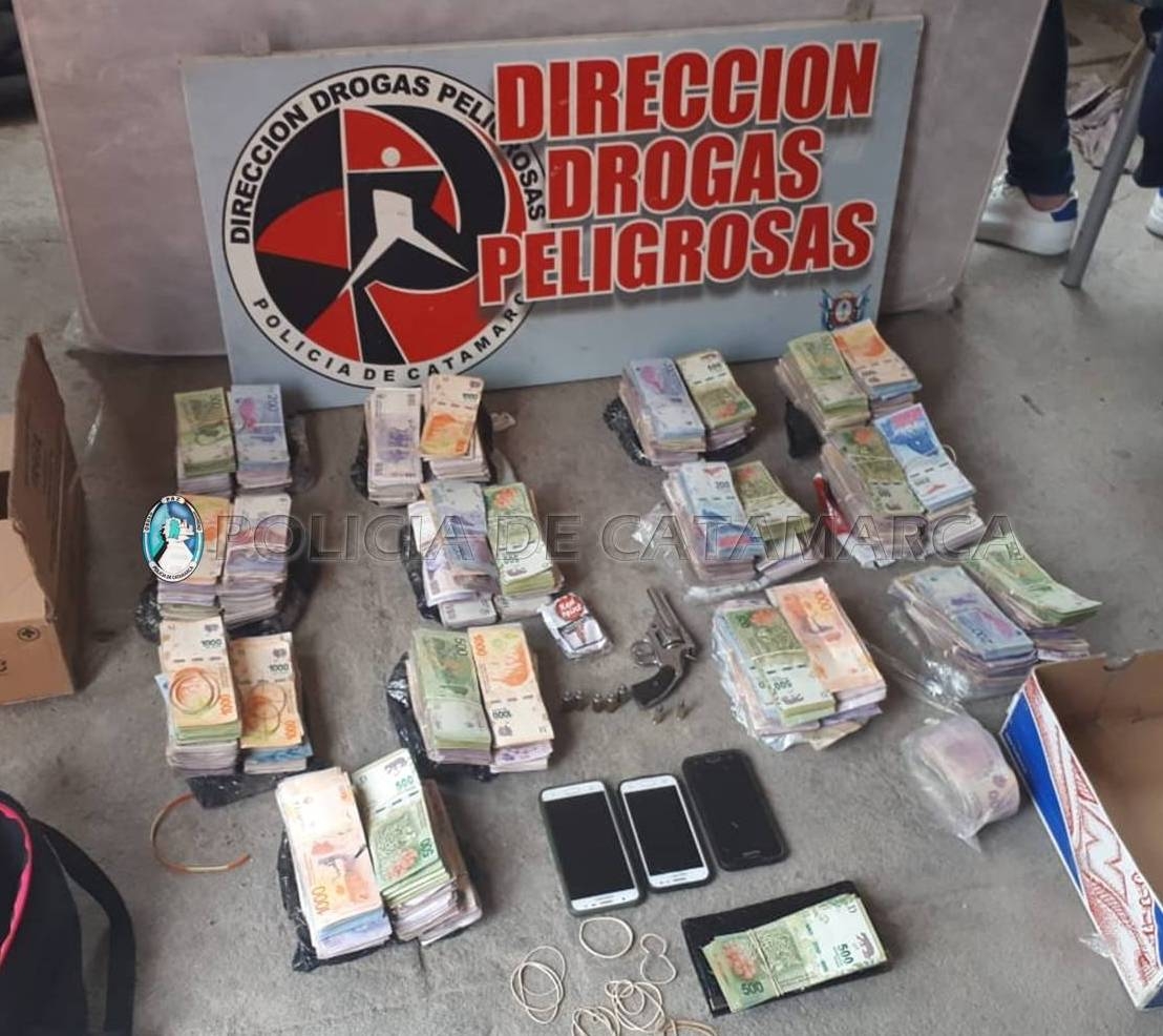 Luego de este procedimiento, el Juez Federal de Catamarca, Dr. Miguel Ángel Contreras, dispuso allanar seis domicilios; dos de ellos en Capital, uno en Fray Mamerto Esquiú y los tres restantes en Chumbicha, Capayán, donde los investigadores, con la colaboración de efectivos de la División de Operaciones Especiales Kuntur, de los Grupos de Infantería Femenino y de Intervención Rápida (GIR Sur), y de las Comisarías de Piedra Blanca, Segunda de la Capital y Departamental Chumbicha, incautaron el rededor de dos millones de pesos ($2.000.000) en efectivo, en billetes de distinta denominación, dos pistolas Bersa calibre 22, una carabina calibre 22, un revólver calibre 32 y gran cantidad de muciones de distintos calibres, como así también diez teléfonos celulares de distintos modelos, balanzas de precisión, elementos para fraccionar la sustancia estupefaciente, un automóvil Volkswagen Gol, y dos motocicletas.