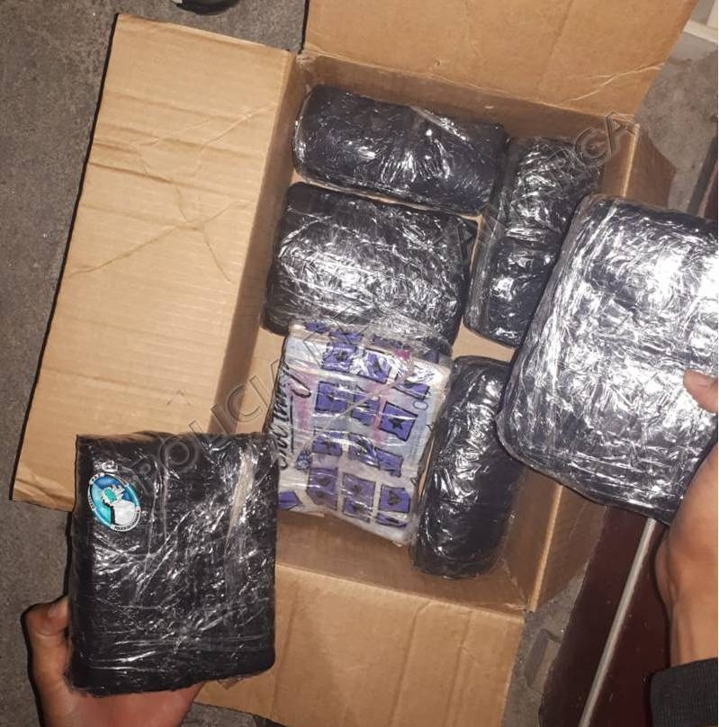 Encontraron oculto en el habitáculo del auto una caja que contenía envoltorios con 8 Kg. de cocaína de máxima pureza, conocida como "alita de mosca", que quedaron en calidad de secuestro, mientras que en la camioneta hicieron lo propio con unos 500 mil pesos en efectivo, discriminados en billetes de distinta denominación.