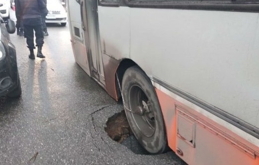 Al arribar al lugar, los efectivos constataron que un colectivo de la línea 104, interno Nº 55, de la empresa El Nene, estaba hundido en el pavimento, luego de que el mismo cediera.